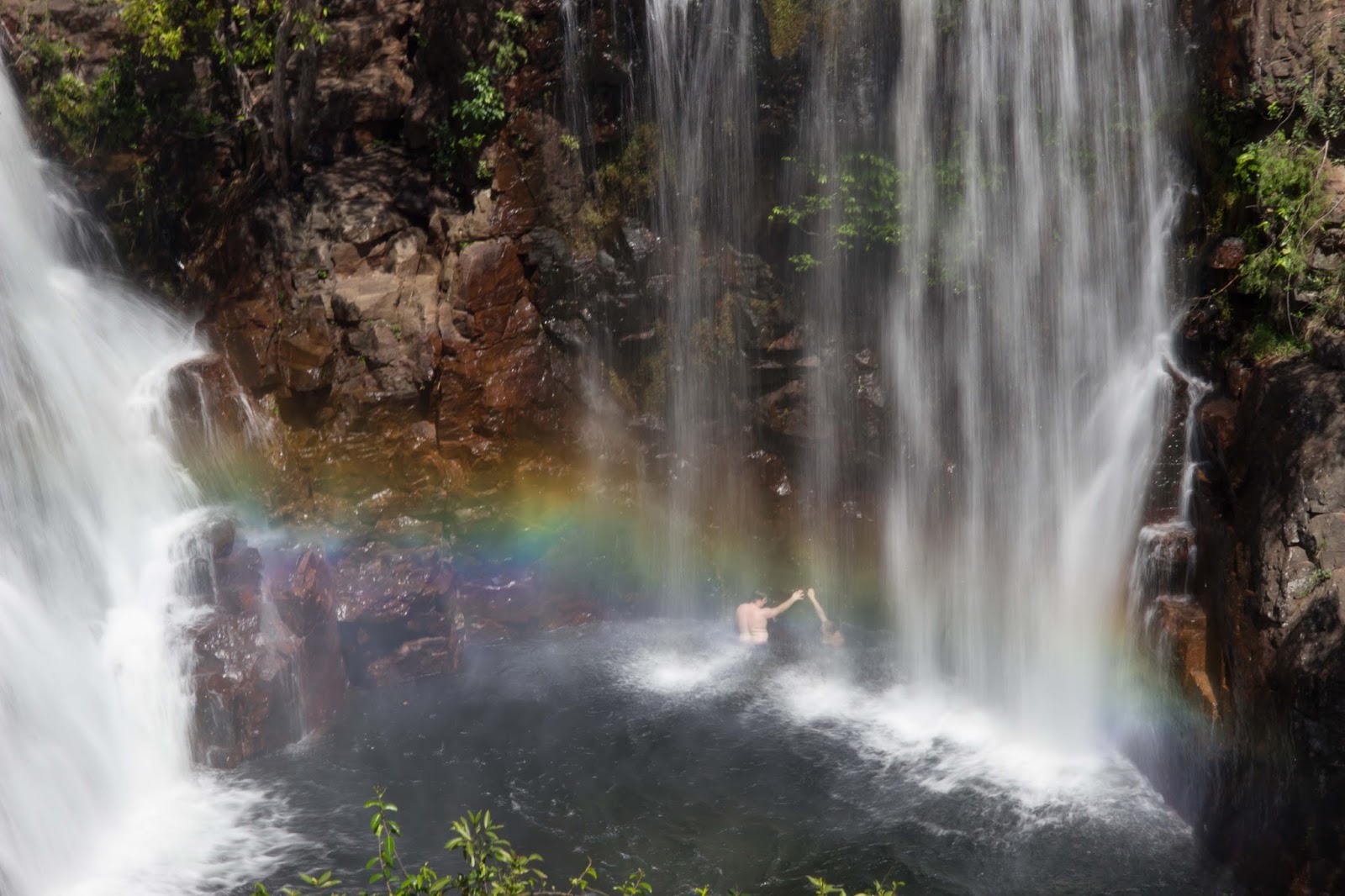 Der Litchfield Nationalpark liegt im Northern Territory, nur etwa eine Stunde von Darwin entfernt. Hier gibt es wunderschöne von Dschungel umgebene Wasserfälle und Rockpools- ganz Krokodilfrei! Übernachten kann man auf einem der vielen Campingplätzen dort für knappe 10$ die Nacht.